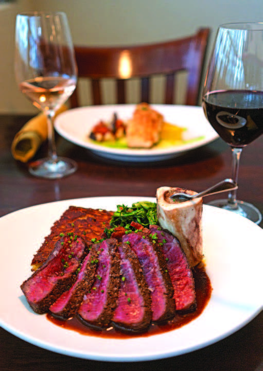 Cross Creek Ranch American wagyu beef, Yukon gold potato gratin, glazed carrots and fresh herb chimichurri